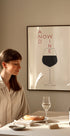 Ein modernes und minimalistisches Poster mit einem halbgefüllten Weinglas, kombiniert mit verspielter Typografie, die „And Now Wine“ buchstabiert. Perfekte Wandkunst für Küchen, Esszimmer, Weinkeller oder Bars. Ein stilvolles und humorvolles Feature für Weinliebhaber.