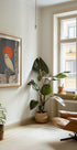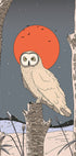 Vintage Owl von Nicholas fängt die Poesie der Nacht ein: Eine wachsame Eule mit leuchtenden Augen ruht zwischen schlanken Birken, während Schneeflocken im Mondlicht fallen. Geometrische Formen und eine einfache Strichzeichnung verleihen dem Motiv einen retro-minimalistischen Ausdruck, der nordische Ruhe und Winterzauber ausstrahlt. Der stilisierte Nachthimmel verleiht Tiefe und eine Vintage-Farbpalette sorgt für Ruhe.