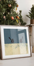 Eine grafische Illustration schwarzer Vögel im verschneiten, frostigen Stil. Der Kontrast zwischen dunklen Silhouetten und weißer Winterruhe erzeugt eine nostalgische Retro-Stimmung mit subtilen Texturen. Eine stimmungsvolle Wandkunst von The Creating Mind, perfekt, um kalte, nordische Poesie in den Raum zu bringen. Ideal für Wohnzimmer, Schlafzimmer und kreative Ecken.