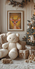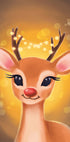 Ein süßes und abenteuerliches Rentierporträt mit funkelnder Lichterkette am Geweih und einem warmen goldenen Hintergrund. Die sanfte Illustration und das freundliche Lächeln machen das Motiv sowohl gemütlich als auch verspielt. Ideal für Weihnachtsdekorationen in Häusern, die ein wenig Winterzauber an der Wand haben möchten.