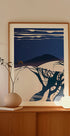 Eine stille Winternacht entfaltet sich: Schlanke, kahle Bäume zeichnen sich dunkel vor einem tiefen Sternenhimmel ab, während ein großer Mond über fernen Bergen aufgeht. Japanisch inspirierter Minimalismus trifft auf verträumte Atmosphäre in einem Motiv, das Ruhe, Geheimnis und kosmische Poesie in Einklang bringt – perfekt als meditativer Blickfang.