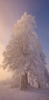 Ein ruhiger Wintermorgen entfaltet sich in einer in goldenes Morgenlicht getauchten Landschaft. Raureif glitzert auf dem Gras und den Ästen, während sich die Silhouette eines einzelnen Baumes deutlich vom klaren Himmel abhebt. Der Schnee dämpft jede Spur und die Luft bebt vor Kälte und Ruhe. Das Foto wurde von Judith Kuhn erstellt. Die Sonnenstrahlen brechen durch reimende Zweige und verleihen dem Motiv eine poetische Ruhe.