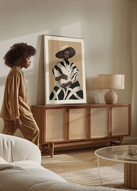 Woman In Stripes Holding a White Rabbit (NEW)